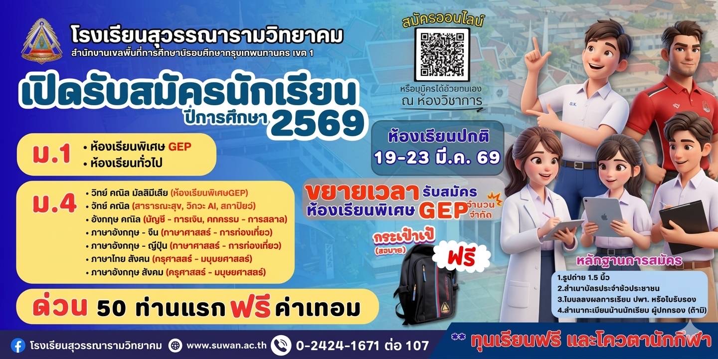 ยินดีต้อนรับเข้าสู่เว็บไซต์โรงเรียนสุวรรณารามวิทยาคม