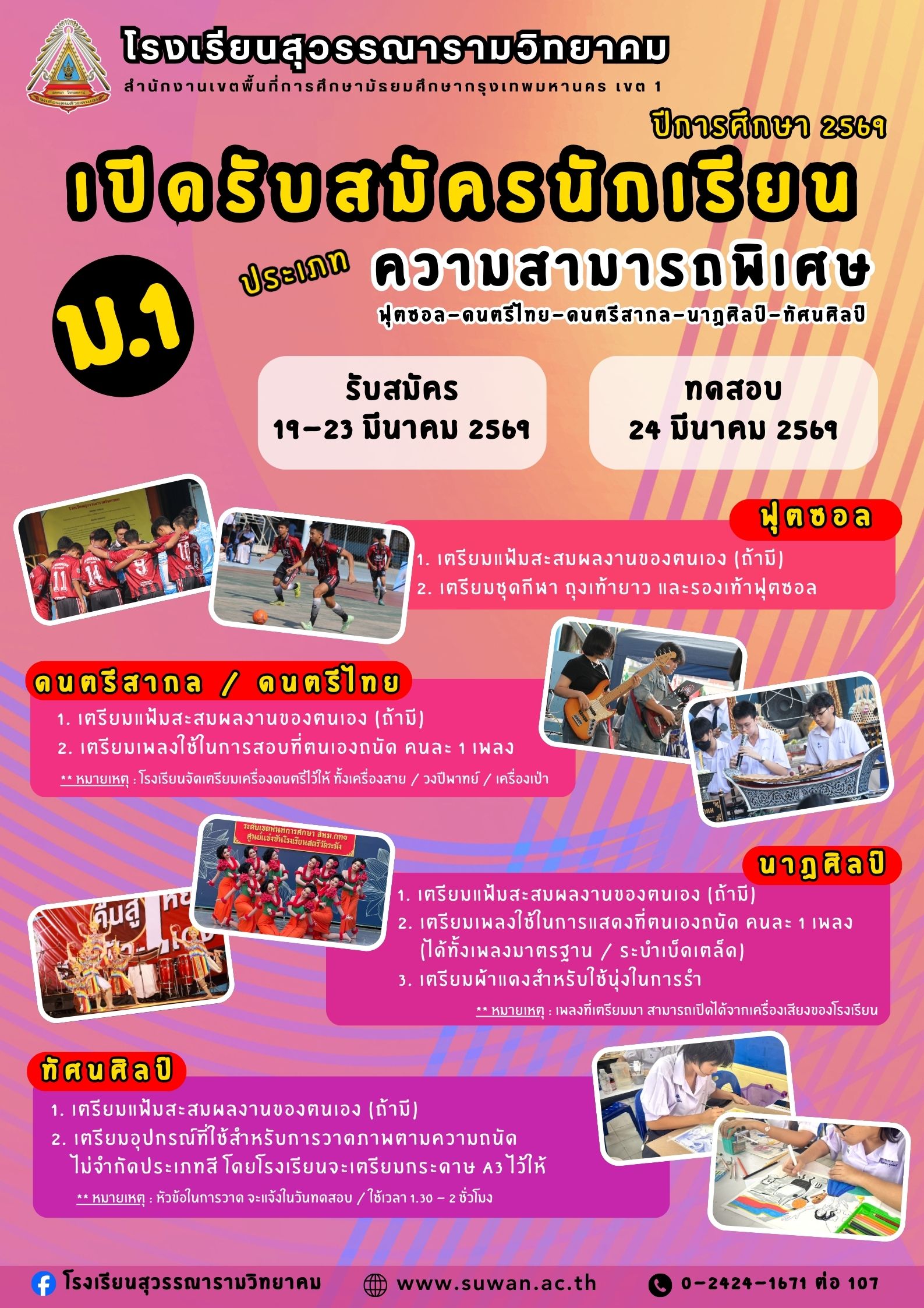ประกาศโรงเรียนสุวรรณารามวิทยาคม เรื่อง ประกาศการรับนักเรียนเข้าศึกษาต่อชั้นมัธยมศึกษาปีที่ 4 ห้องเรียนโครงการส่งเสริมความเป็นเลิศทางวิชาการ (GEP) ปีการศึกษา 2569